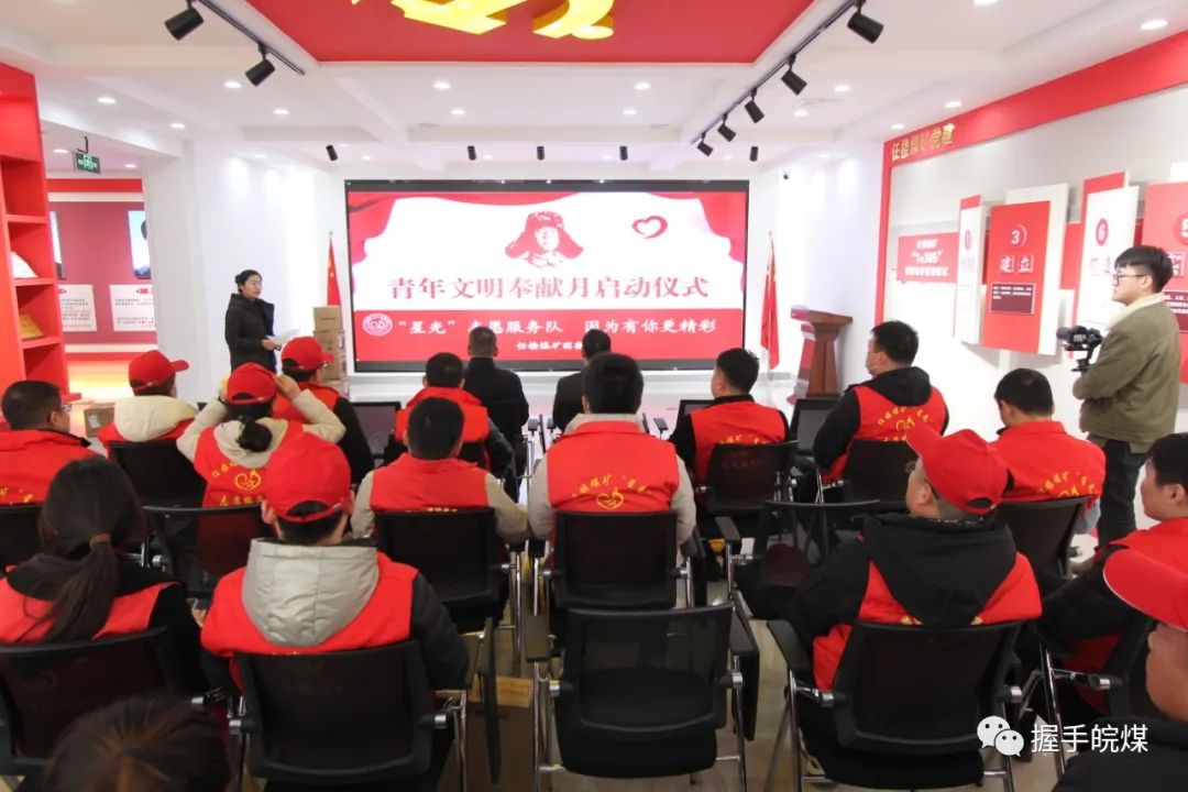 任樓礦在黨建領(lǐng)航中心舉行“青年文明奉獻(xiàn)月”啟動(dòng)儀式。