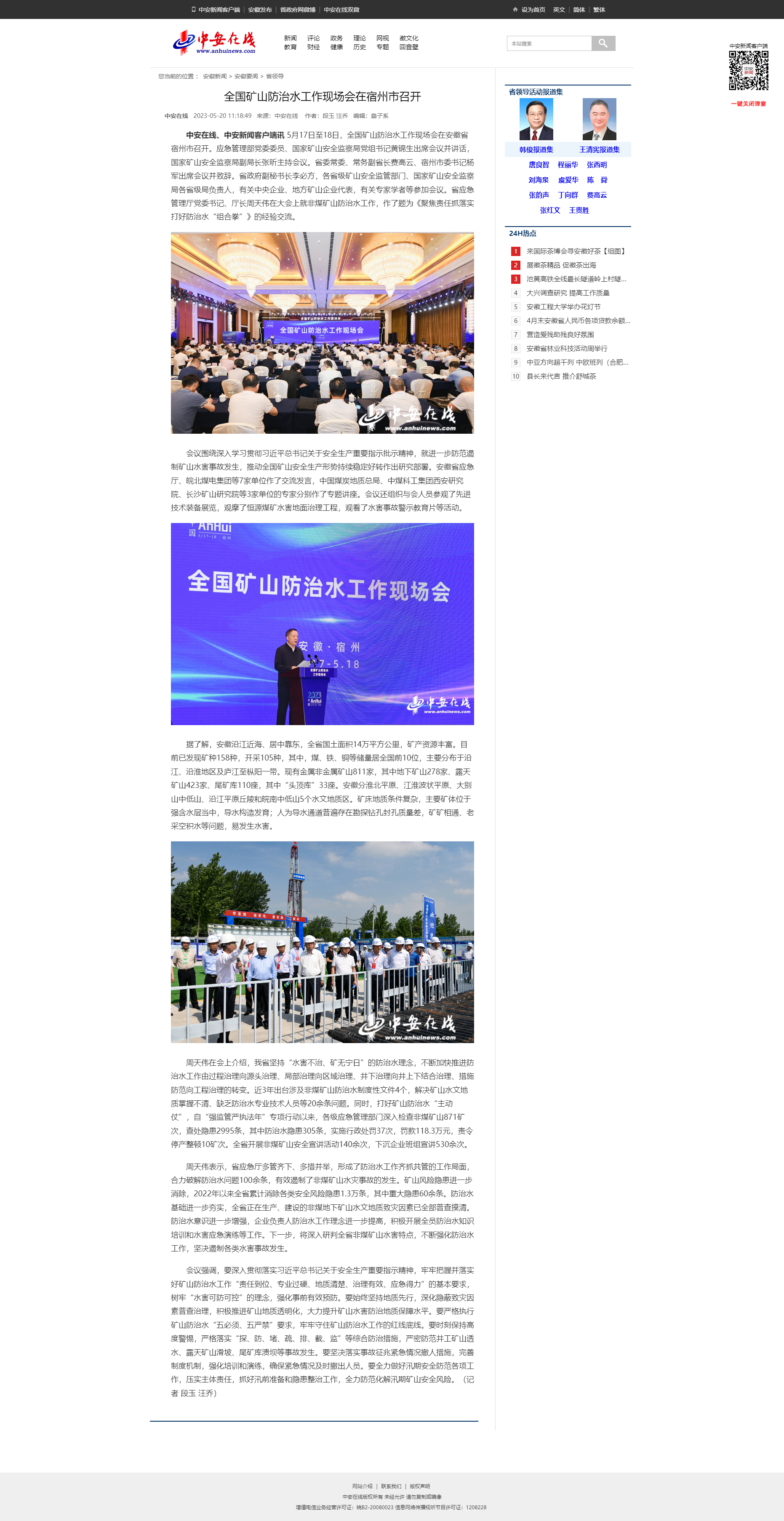5月20日中安在線:全國(guó)礦山防治水工作現(xiàn)場(chǎng)會(huì)在宿州市召開