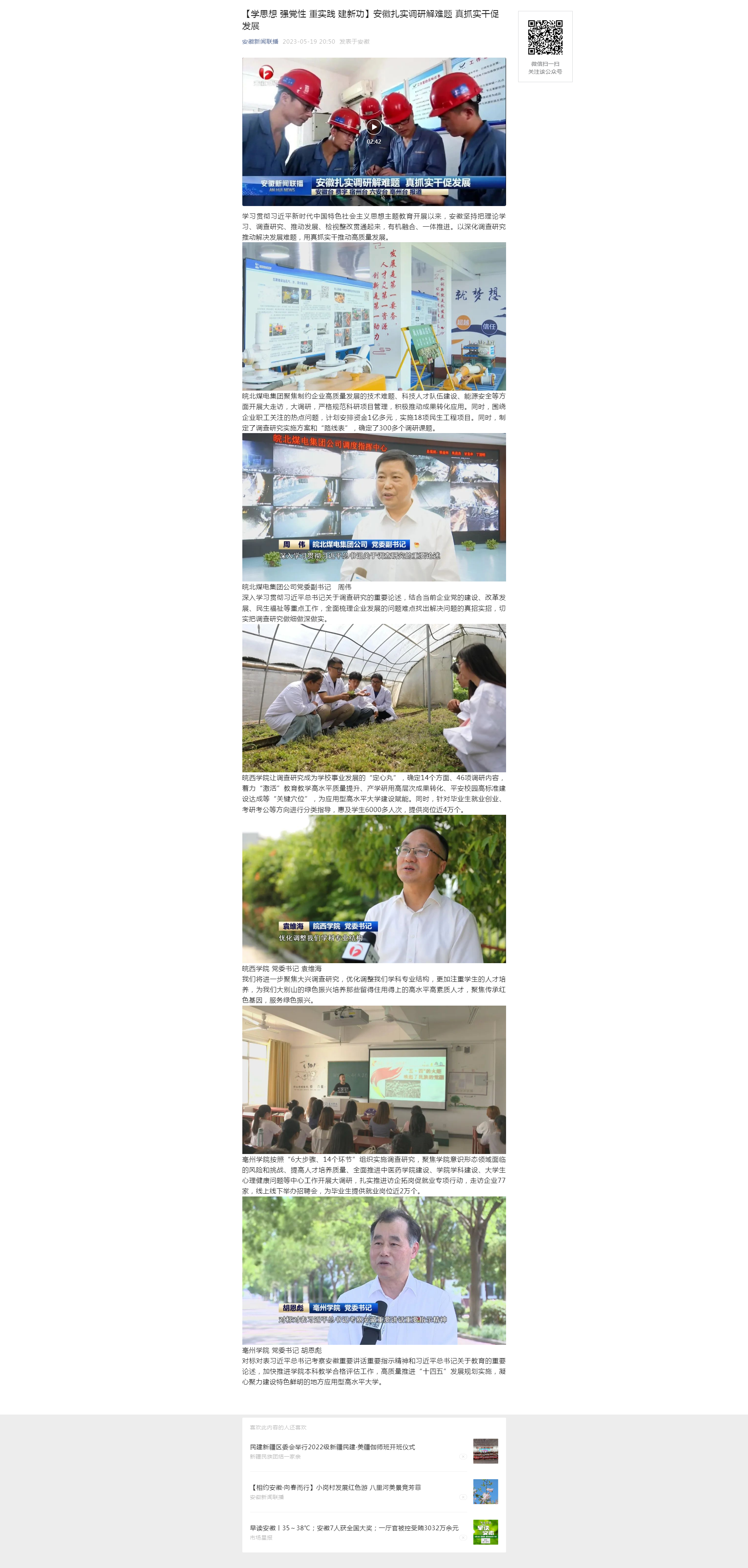 5月19日安徽新聞聯(lián)播:【學(xué)思想 強(qiáng)黨性 重實(shí)踐 建新功】安徽扎實(shí)調(diào)研解難題 真抓實(shí)干促發(fā)展