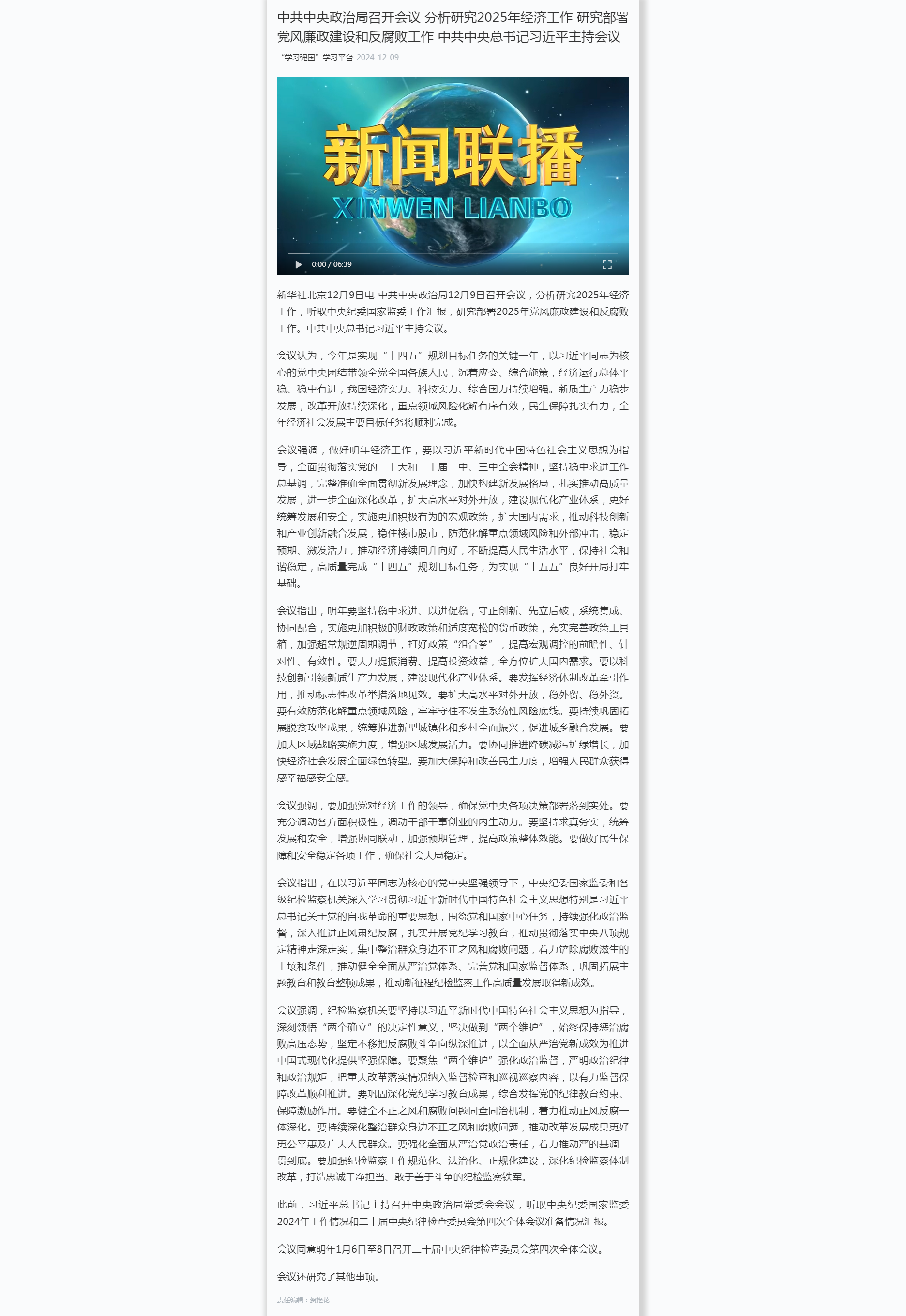 中共中央政治局召開會議 分析研究2025年經(jīng)濟(jì)工作 研究部署黨風(fēng)廉政建設(shè)和反腐敗工作 中共中央總書記習(xí)近平主持會議